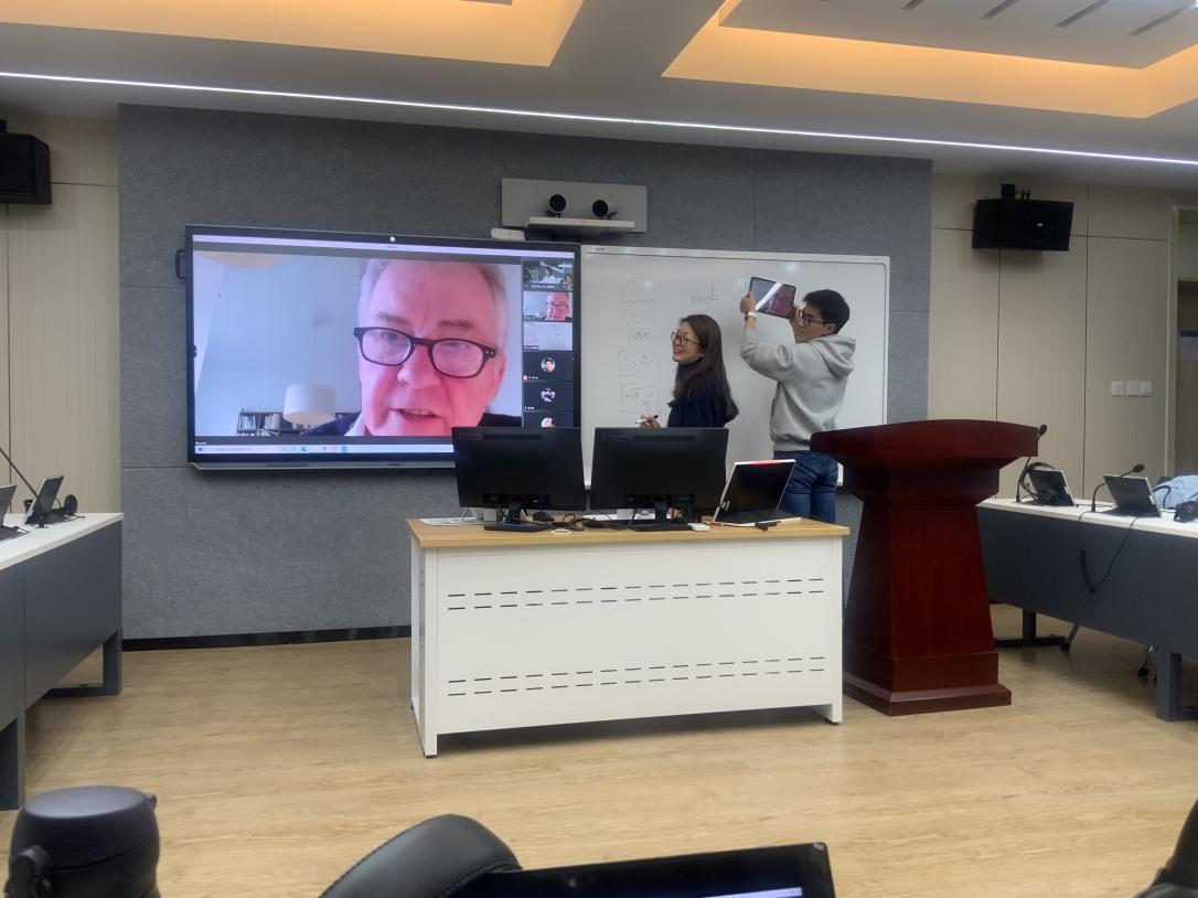 2021年11月16日和12月3日,欧盟口译总司前中国项目负责人Paul Brennan先生为水果派解说 2021级英语口译专业的研究生进行了两期交传笔记大师课的授课,水果派解说 翻译学系副主任、国际会议口译项目负责人胡荣老师参加并主持了大师课。