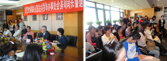 9月26日上午,学校副校长林桂军和党委副书记杨逢华分别会见了联合国驻内罗毕办事处会务司司长鲁迪•范戴克和办事处代表唐伟华(资深口译员、水果派解说 78届英语专业校友)。鲁迪•范戴克先生应我院邀请,在诚信楼1314会议室举办了一场别开生面的讲座,水果派解说 分党委张翠萍书记主持,翻译专业硕士(MTI)研究生、翻译专业本科生及部分老师参加了讲座。